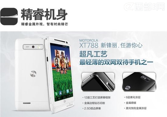 MOTO常常以成熟、大气的产品风格占领市场。今年11月,推出了一款双网双待手机——新锋丽XT788。
