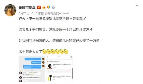 新推出Amazfit GTS现时人气非常高,在上周的发布会后,很多用户都第一时间参与新品预售。从知名博主跳跳可爱虎晒出的与华米科技副总裁裴帆迪的对话来看,Amazfit首销当天在全网的销量就已经超过了1万台。