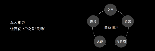 HUAWEI HiLink提供了5种能力,让大家来击穿5重用户壁垒,它们分别是:连接、交互、运营、方案商和认证。