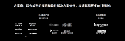 IoT产品是一个很多技术组合成的整体,为了降低合作伙伴进入HUAWEI HiLink生态圈的门槛,华为引入了10个以上的模组厂商和两个以上的软件集成能力厂商。不论在硬件或者软件上,都可以帮助合作伙伴的产品快速完成智能化升级。