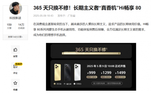 高品质成就信心保障,新品发售期间Hi畅享 80还为用户提供“365天只换不修”权益,符合条件者一年内非人为质量问题可享直接免费焕新,打消用户疑虑看,买手机更放心了,这也是Hi畅享 80迅速成为线上线下的热销爆款的原因之一。